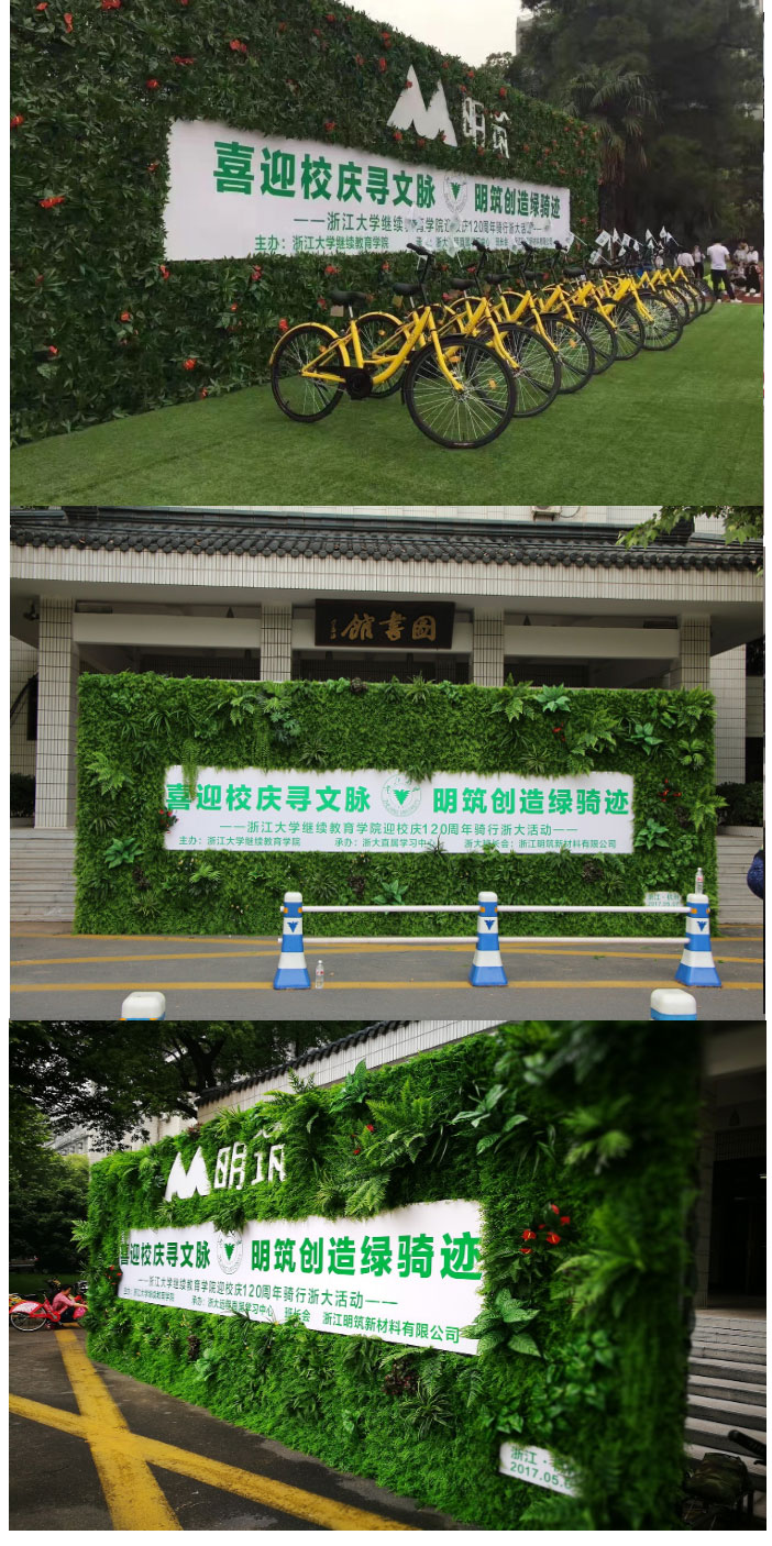 浙江周年校慶明筑聯(lián)合浙大舉辦的綠騎跡活動,現(xiàn)場展現(xiàn)了多面制作非常精美的植物墻,為精彩的活動起到了點睛的作用。