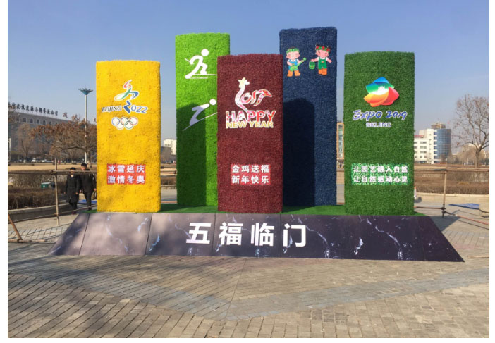 北京冬奧會干道主路口的五福臨門仿真植物綠雕