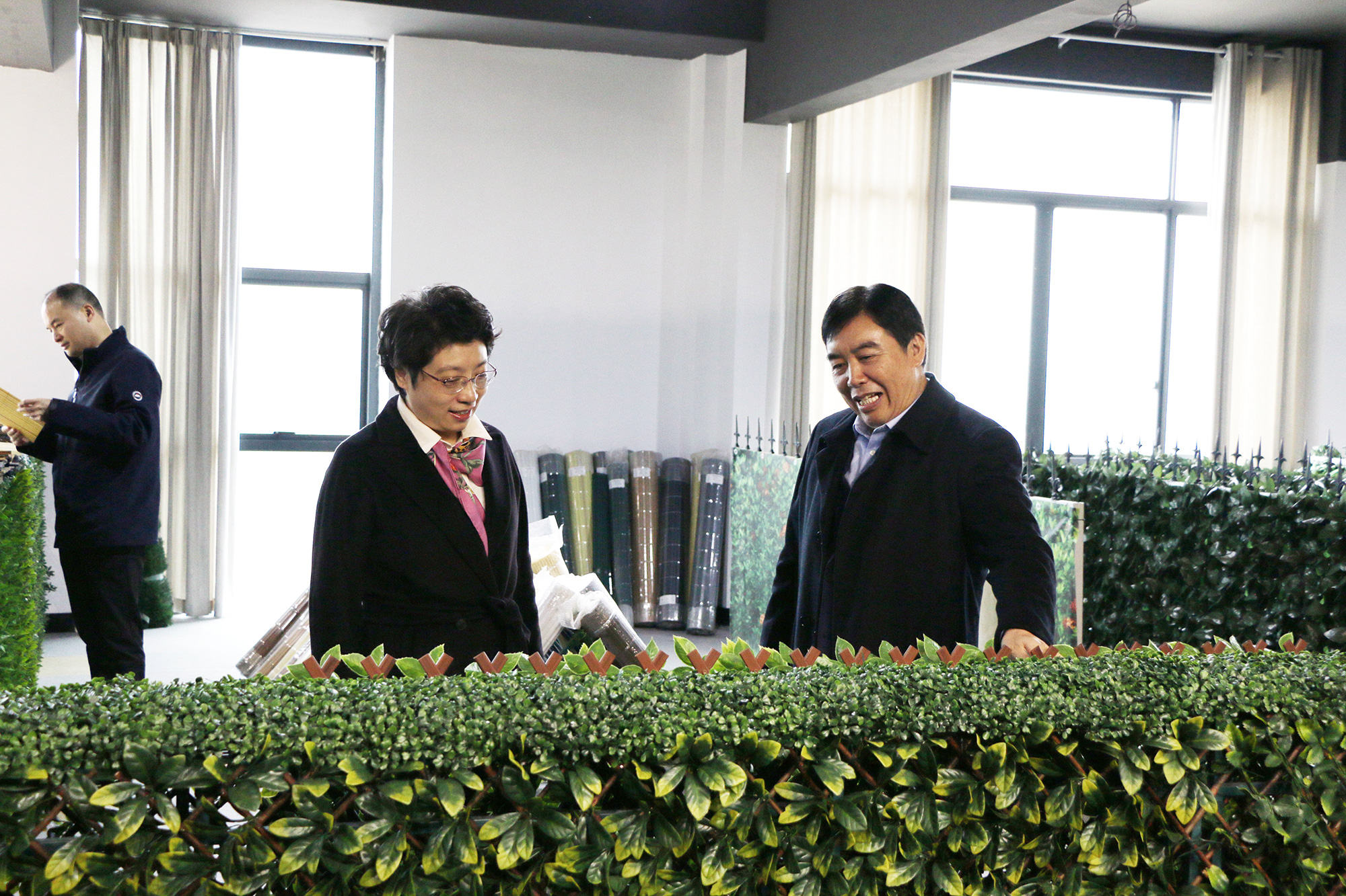 徐董事長(zhǎng)為楊縣長(zhǎng)介紹了明筑公司的發(fā)展近況和仿真植物墻仿真樹(shù)葉籬笆產(chǎn)品