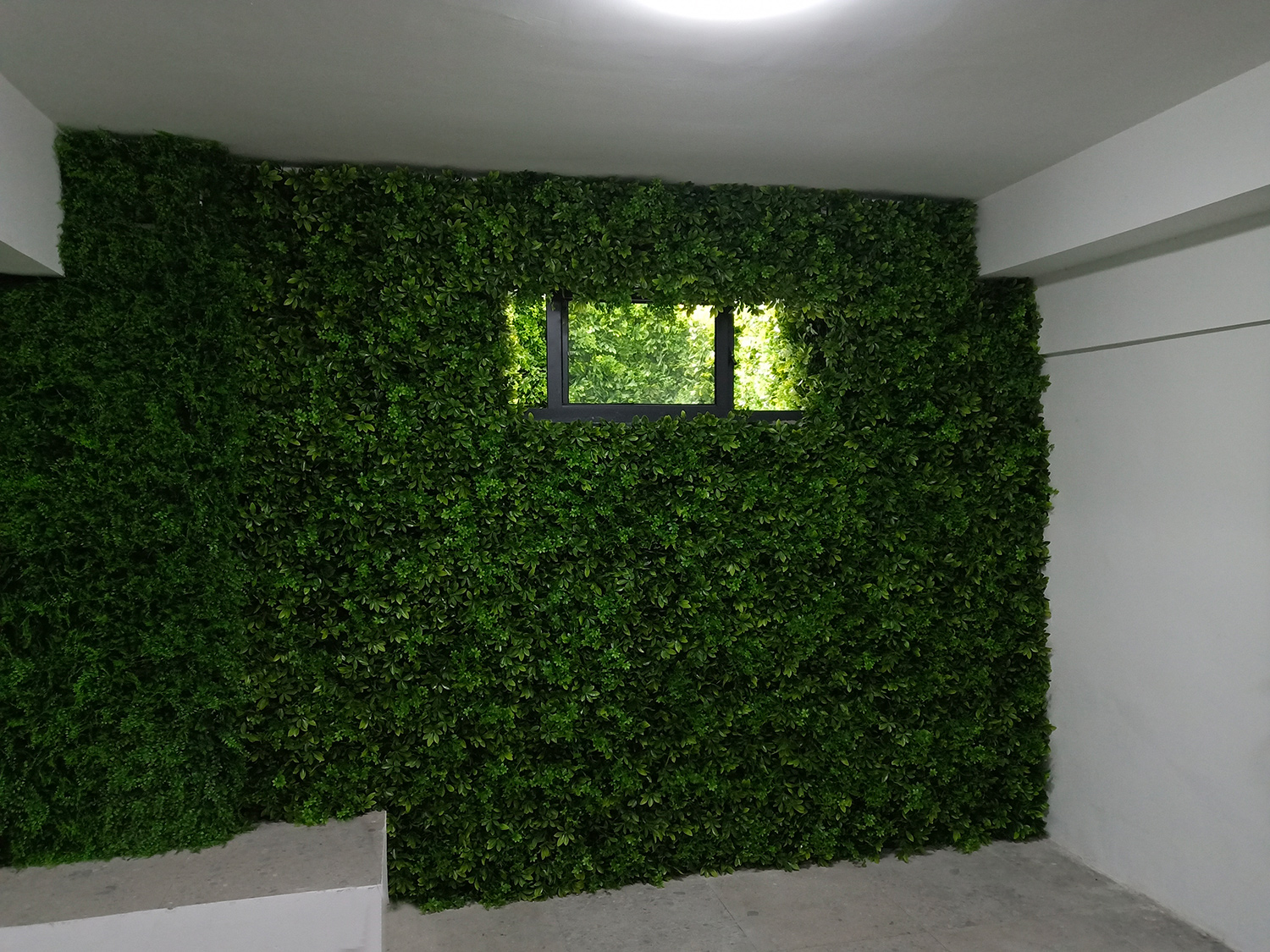 先將小塊的仿真植物墻產(chǎn)品組裝成合適的大小