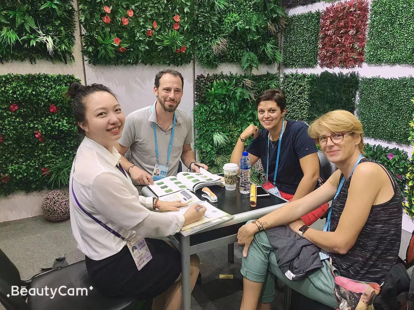 ?明筑公司自2001年參加廣交會(huì)以來,從一開始的幾百萬銷售額到現(xiàn)在的幾個(gè)億,連續(xù)六年銷售額增幅保持在30%以上,連續(xù)六年全國同行業(yè)出口排名第一,這都跟廣交會(huì)這個(gè)平臺(tái)密不可分。近年來,出口環(huán)境日益嚴(yán)峻,中美貿(mào)易摩擦給整個(gè)行業(yè)帶來了不確定的影響,且一些不良小工廠只抄襲外觀設(shè)計(jì),不注重產(chǎn)品自身品質(zhì),擾亂市場價(jià)格讓明筑公司受到了前所未有的挑戰(zhàn),然而所有明筑人眾志成城,砥礪前行。本屆廣交會(huì)公司參展的產(chǎn)品除了仿真植物墻,仿真植物籬笆,擠出籬笆等常規(guī)產(chǎn)品外還推出了一系列新產(chǎn)品,仿真植物雕塑和仿真花環(huán)。來自澳大利亞,沙特,美國等三位客戶當(dāng)場簽下了仿真球,高仿真綠色植物墻等訂單,累計(jì)成交量大約3000萬元。