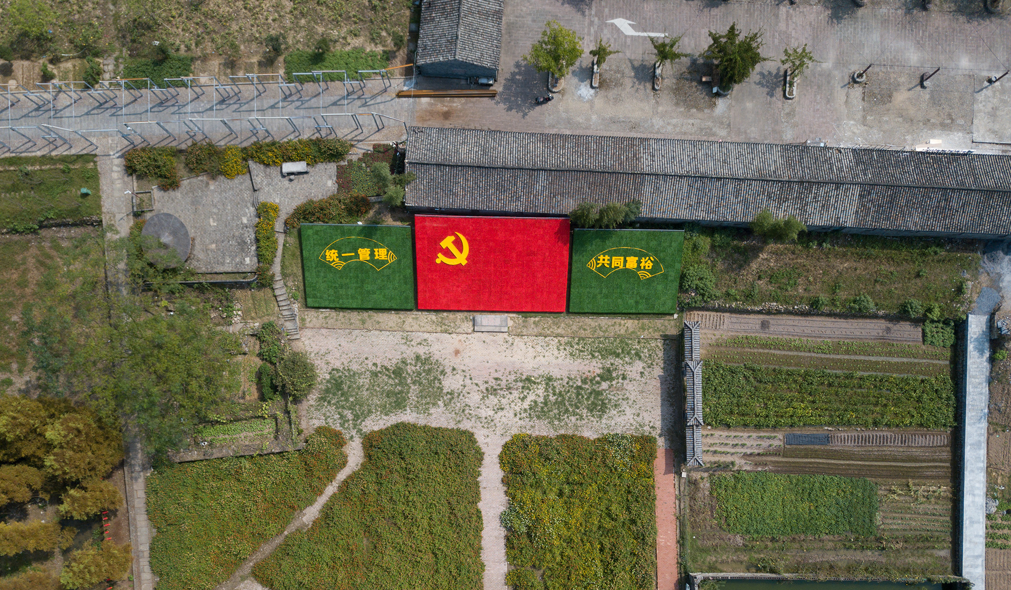 黨旗身處雄偉壯觀的“十里鐵甲龍”腳下