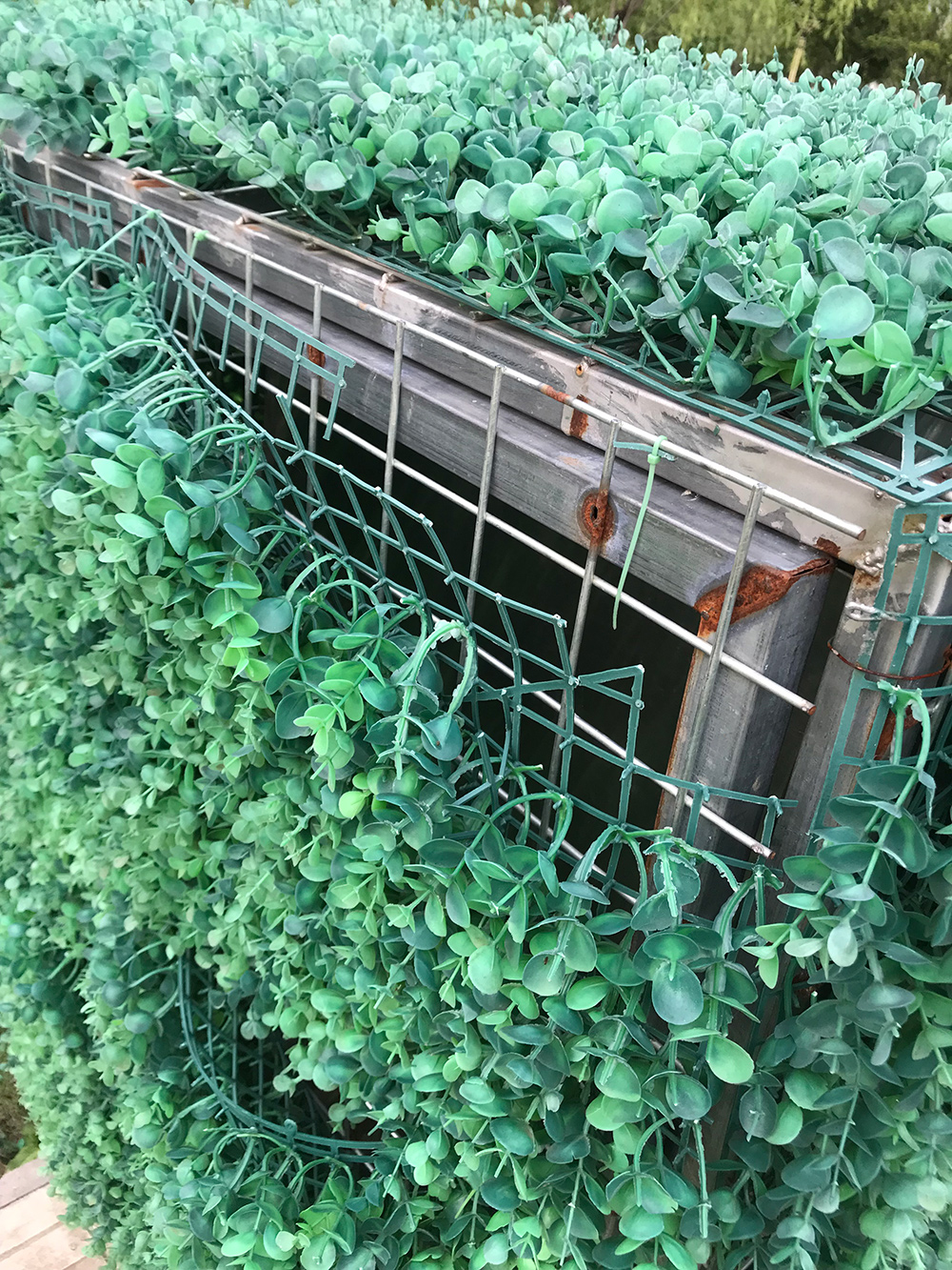 大型變電箱綠植裝飾,歷經(jīng)4年半,色彩沒(méi)有明顯變化,葉片也沒(méi)有明顯的掉落